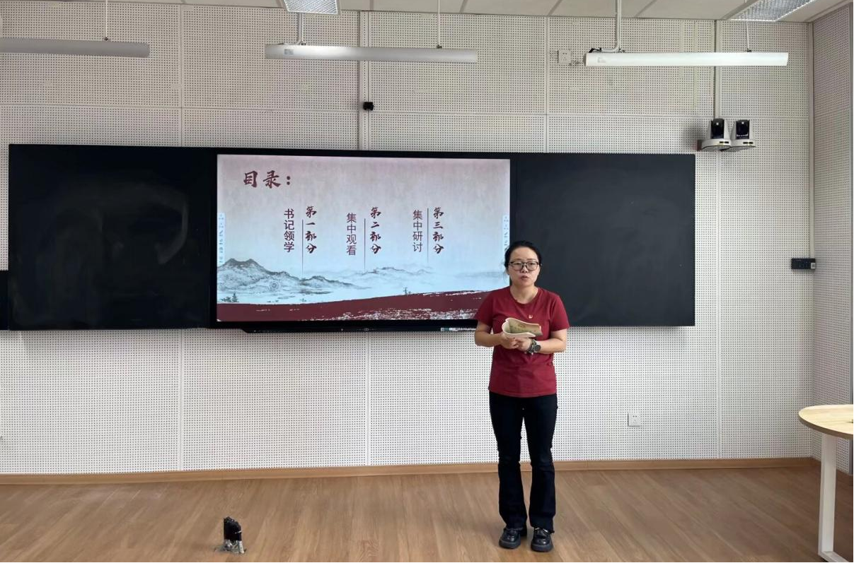 紧接着,党支部书记毛文波同志围绕《弘扬伟大抗战精神,向着中华民族伟大复兴的光辉彼岸奋勇前进》一文,带来了一堂深刻而动人的党课。书记结合教育工作者的使命,生动阐释了伟大抗战精神的时代价值,号召全体党员从中汲取力量,将精神传承融入立德树人的实践中,培育有骨气、有志向的新一代。