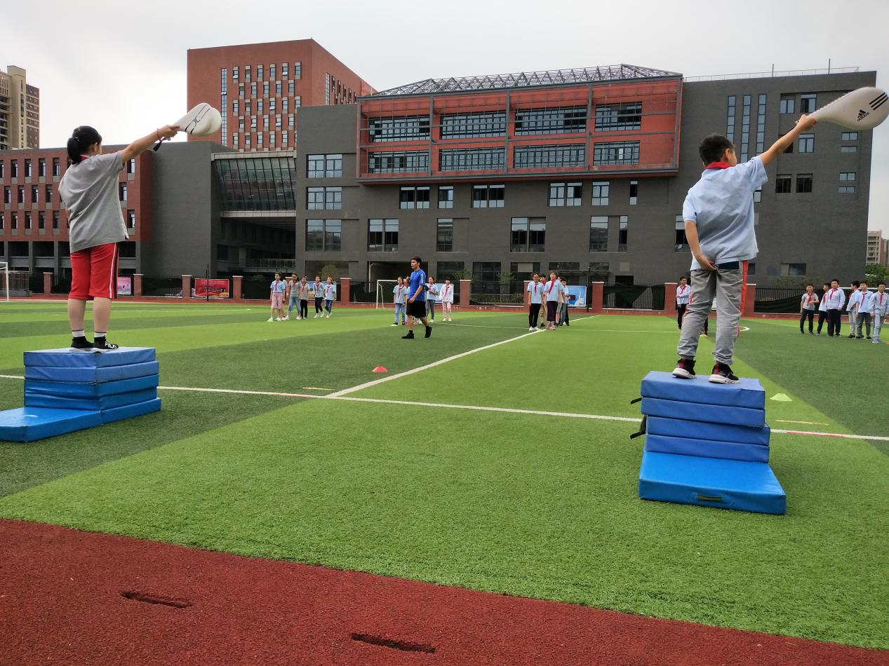 最后是龚友为老师为我们带来的《跳跃:助跑后单脚起跳摸高》展示课,本节课以趣味慢跑导入,通过在慢跑中让学生进行双脚跳和单脚跳,让学生对动作进行泛化学习,通过由上一步起跳过渡到助跑起跳,逐步突破教学重难点,提高学生蹬地踏跳动作的熟练度,发展力量、协调素质,通过两人交换,培养合作能力。