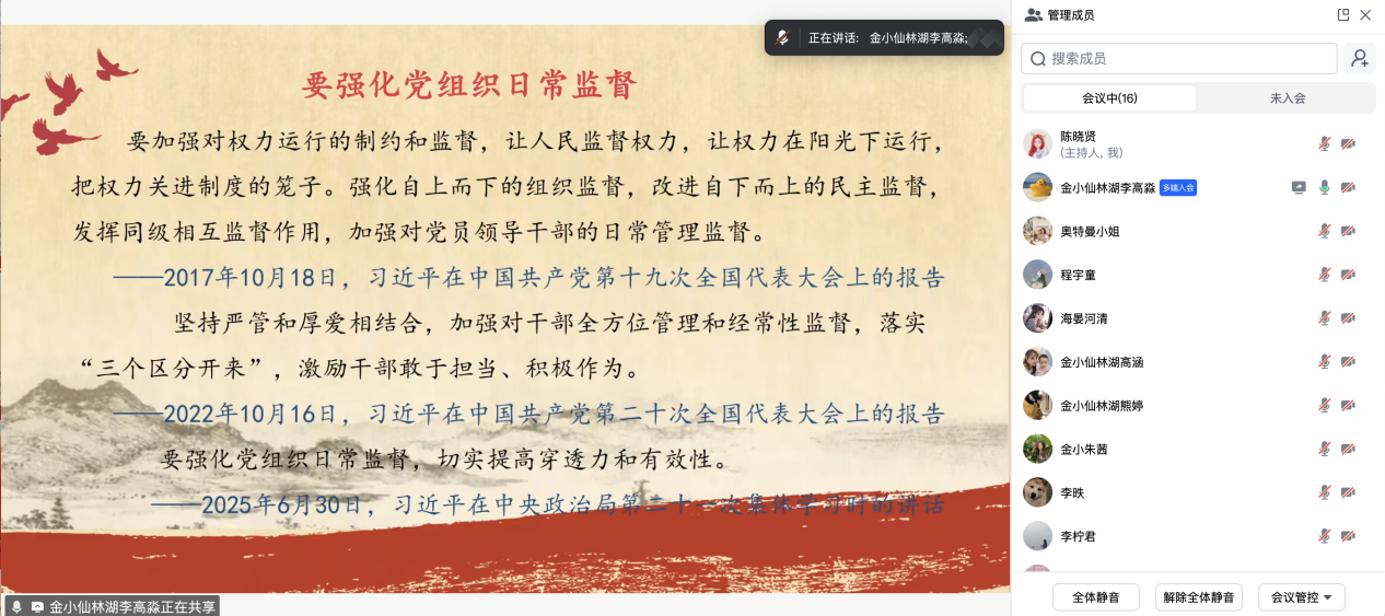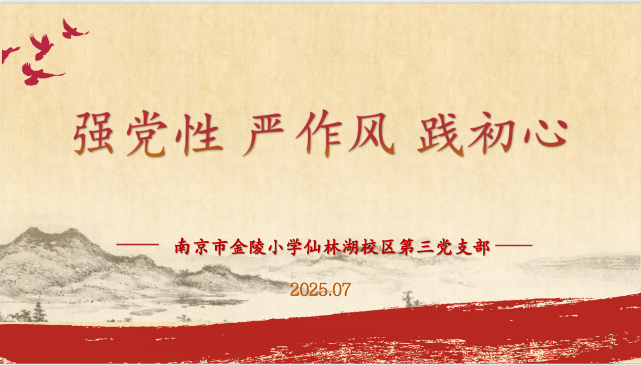 2025年7月30日,金陵小学仙林湖校区第三党支部以 “强党性 严作风 践初心” 为主题,精心组织开展线上主题党日活动。全体党员深度参与,共同筑牢思想根基,凝聚起奋进新征程的磅礴力量。