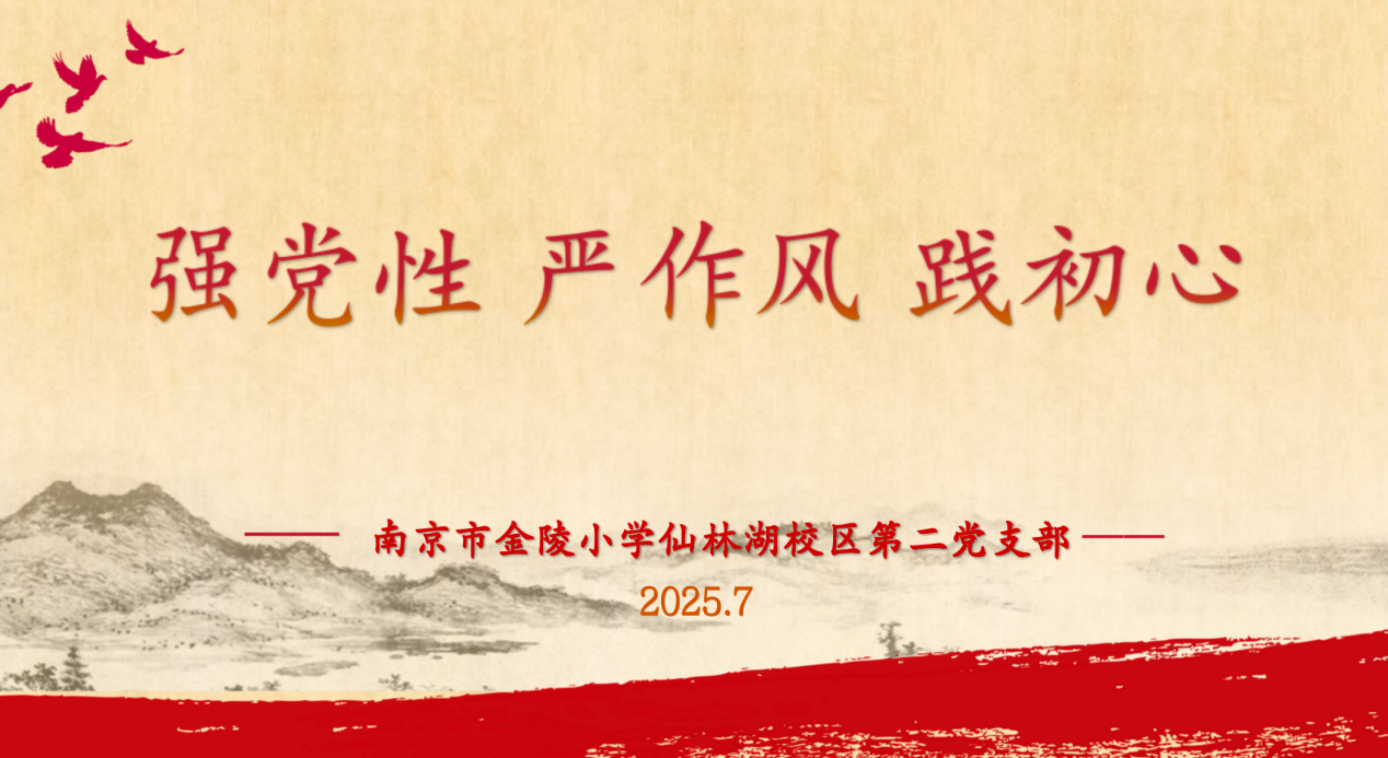 为深入学习贯彻习近平新时代中国特色社会主义思想,进一步增强党员的党性修养,提升党组织的凝聚力和战斗力,2025年7月30日,金陵小学仙林湖校区第二党支部以 “强党性 严作风 践初心” 为主题,扎实开展了7月主题党日活动。本次活动聚焦理论学习,力求引导党员在思想上受洗礼、在行动上见真章,为学校发展与社会进步贡献力量。