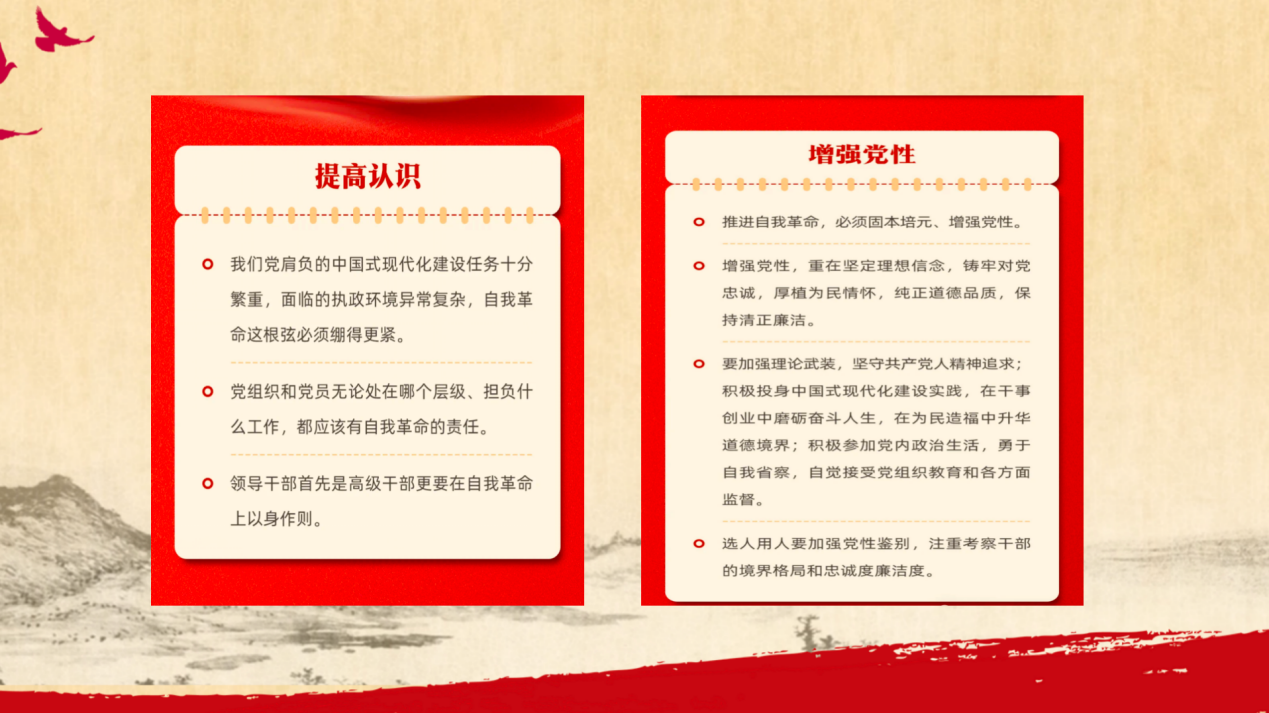 活动伊始,由组织委员孟然同志领学“进一步落实新时代党的自我革命要求总书记强调五个方面”。习近平总书记强调,推进党的自我革命,要在提高认识、增强党性、规范权力运行、从严监督执纪、履行管党治党责任等方面进一步落实到位,对党的自我革命进行再动员再部署。通过学习,全体党员深刻认识到作风建设是党的自我革命的重要切入点,必须常抓不懈、久久为功,方能筑牢全面从严治党的坚实根基。