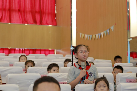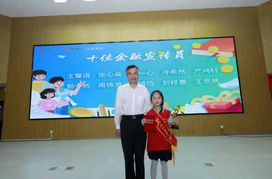 金陵小学广志路校区的严谨玥作为获奖小选手代表发言,表达了金融知识在生活中的重要性,并表达了小记者们在生活中会继续宣传金融知识的决心。