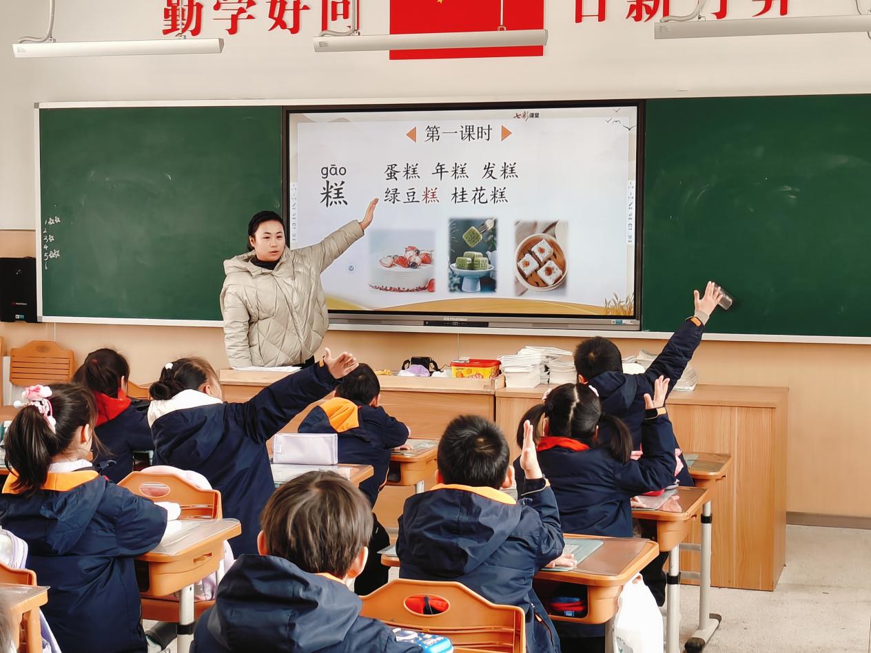 上课伊始,孩子们通过夹年糕的游戏复习了生字词,为进一步学习课文做好铺垫。