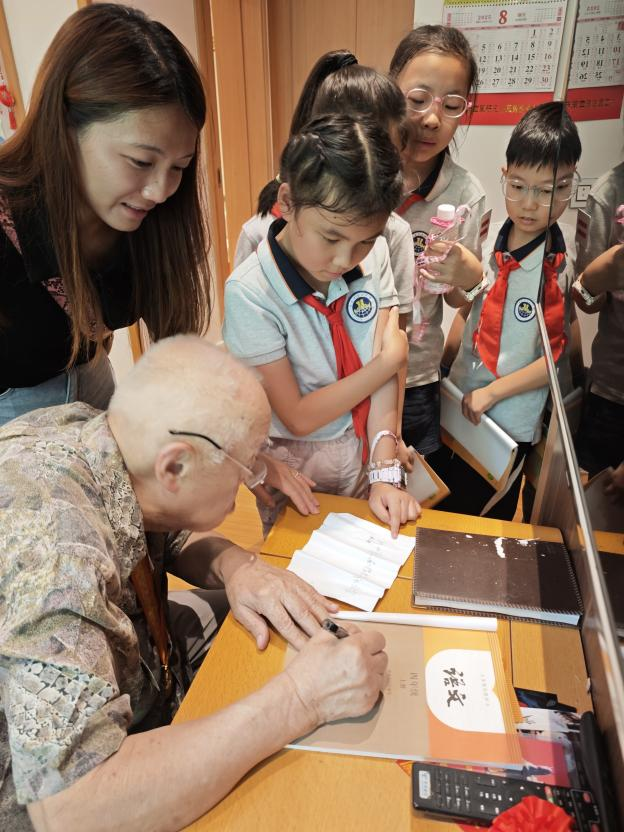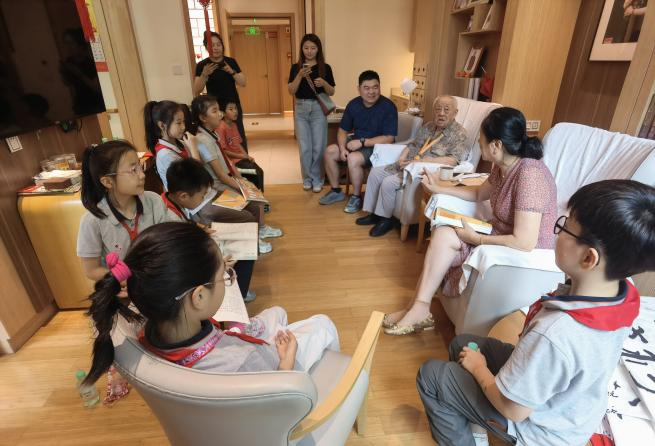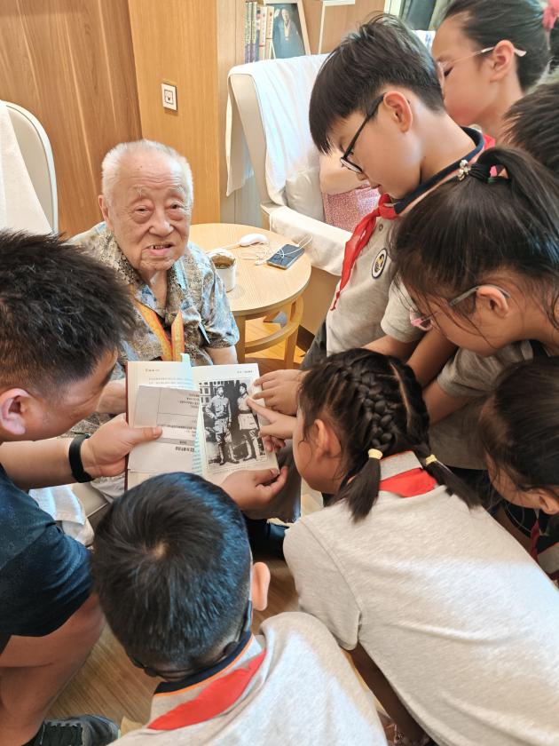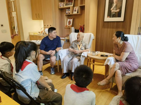 新学期伊始,值此抗日战争胜利80周年纪念日之际,8月31日下午,南京市金陵小学(仙林湖校区)2022级2中队代表怀着无比崇敬的心情来到了欧葆庭仙林国际颐养中心,踏上了寻访英雄的旅程,将开学第一课搬到了新四军老战士丁位西爷爷的住所。这不仅是一次简单的寻访,更是一堂鲜活生动、直抵人心的爱国主义教育实践课,旨在引导少先队员们铭记历史、缅怀先烈、珍爱和平、开创未来。