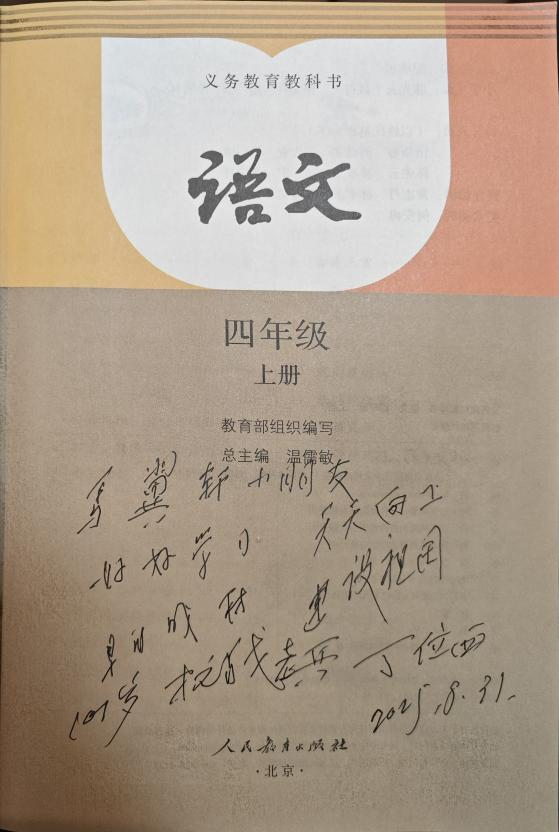 同学们凝神静听,无不动容。生动的讲述胜过书本上的千言万语,让抽象的历史变得可感可触,深刻理解了“天下兴亡、匹夫有责”的内涵,感受到了跨越时空的伟大抗战精神。活动结束后爷爷一一在同学们的课本上留下新学期寄语,希望同学们能够在新学期好好学习,天天向上,早日成材,建设祖国。
